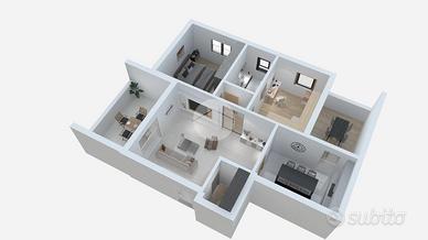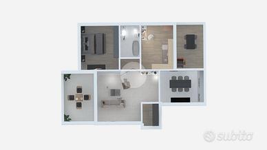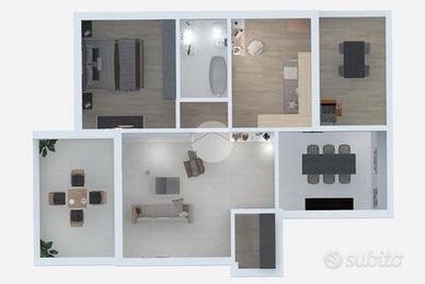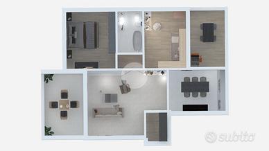 L'appartamento è composto da spazioso soggiorno con sbocco sull'ampio loggiato ideale per momenti di relax e sfruttare le serate estive in compagnia, cucina separata abitabile con accesso diretto a un secondo loggiato e comodo ripostiglio. Completano la soluzione un bagno finestrato, una camera da letto matrimoniale e una camera doppia.
