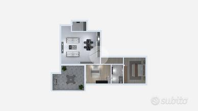 L'appartamento è composto da ampio soggiorno con cucina a vista e accesso diretto all'ampio loggiato ideale per momenti di relax o per sfruttare le serate estive in compagnia. Completa la zona giorno un comodo ripostiglio perfetto per sfruttare al meglio gli spazi e avere tutto a portata di mano.