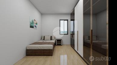 Tramite disimpegno si accede alla zona notte composta da camera matrimoniale, camera singola, ideale per figli, studio o stanza ospiti e bagno finestrato con doccia.
