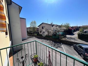 CASTEL MELLA: In tranquillo contesto condominiale, con accesso condiviso da soli quattro appartamenti, proponiamo in vendita luminoso trilocale situato al primo piano. L'ingresso si apre su un accogliente soggiorno, separato dalla cucina abitabile, soluzione ideale per chi desidera ambienti distinti e ben organizzati. Tramite disimpegno si accede alla zona notte, composta da una spaziosa camera matrimoniale, una camera doppia e un bagno finestrato. L'immobile è arricchito dalla presenza di due balconi, uno con accesso dalla cucina e uno dal soggiorno.. A completare la proprietà troviamo un box auto singolo al piano terra con attacchi per l'acqua, un posto auto di proprietà e un curato giardino condominiale. Soluzione ideale per chi è alla ricerca di tranquillità, in un contesto riservato ma ben organizzato.