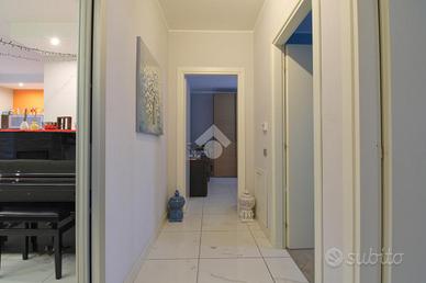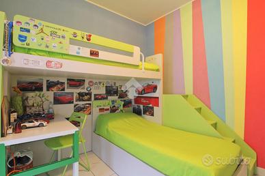 Risalendo al primo piano e proseguendo verso la zona notte, troverete un bagno cieco dotato di box doccia, una camera singola con balcone, un bagno finestrato con vasca e una camera matrimoniale, anch'essa arricchita da un balcone.