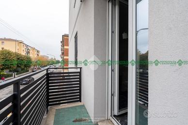 La soluzione è composta da ingresso, ampia sala con balcone, cucina separata anch'essa con balcone, bagno finestrato e due camere matrimoniali.