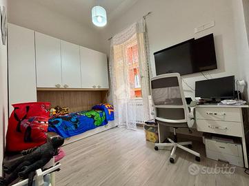 La soluzione si apre su uno spazioso soggiorno d'ingresso, seguito da una camera matrimoniale e una cameretta, entrambe con affaccio su Via Petrarca. La cucina dispone di un comodo balcone con affaccio interno sul condominio, mentre il bagno è stato recentemente rifinito. Completa la proprietà un pratico ripostiglio.
