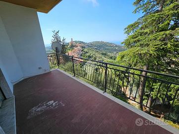Dalla sala accediamo a un ampio e soleggiato terrazzo con una splendida vista mare e monti.