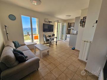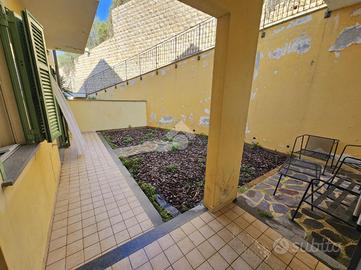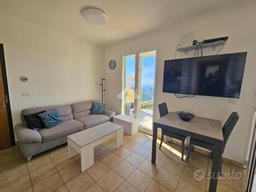 Dalla sala accediamo al terrazzo-giardino di circa 30 mq con una meravigliosa vista mare e monti.
