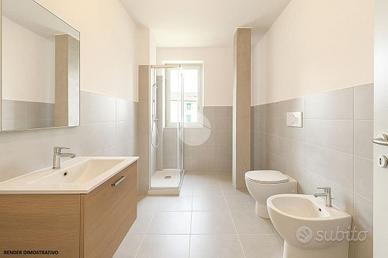 All'ingresso troviamo la zona giorno molto spaziosa open space con cucina a vista (possibilità di ricreare la cucina abitabile) con accesso diretto al balcone ed un ripostiglio.