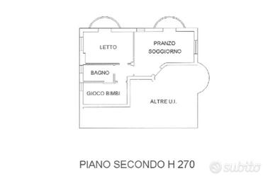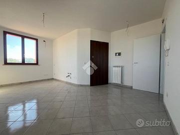 L'ingresso è nel soggiorno, vi è un ambiente open space con angolo cottura e sfogo in una comoda loggia, vi è una camera da letto matrimoniale anch'essa dotata di loggia e un bagno finestrato con doccia.