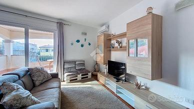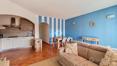 Dalla terrazza, si accede all'ampia e luminosa zona giorno, arricchita da un angolo cottura ben attrezzato e arredato con gusto. Lo spazio è ottimamente distribuito, creando un ambiente accogliente e funzionale.