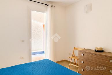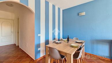 Un disimpegno separa la zona giorno dalla zona notte, composta da una spaziosa camera matrimoniale e una cameretta con letto a castello. Entrambe le camere affacciano sul cortiletto privato situato sul retro dell'immobile, garantendo quiete e privacy.
