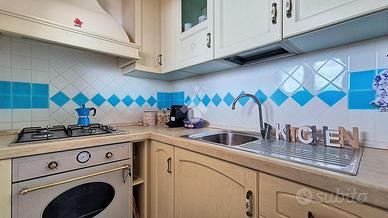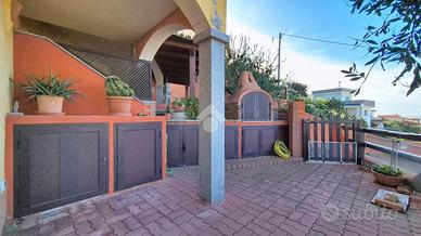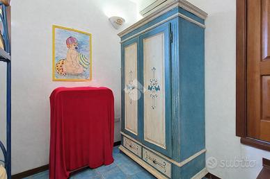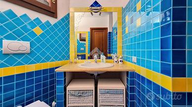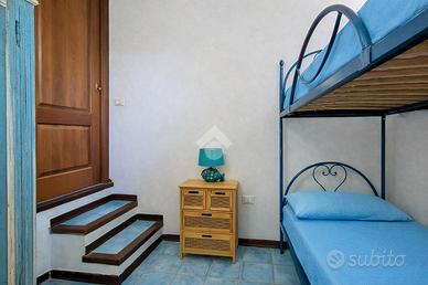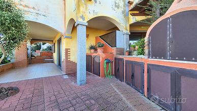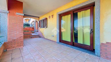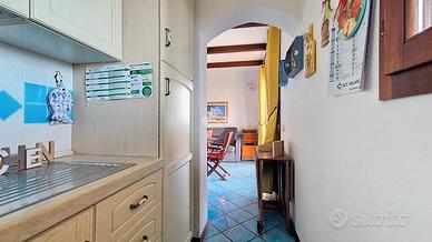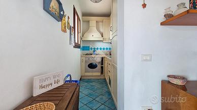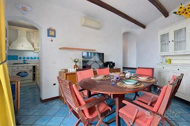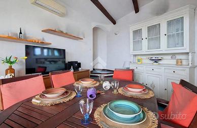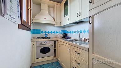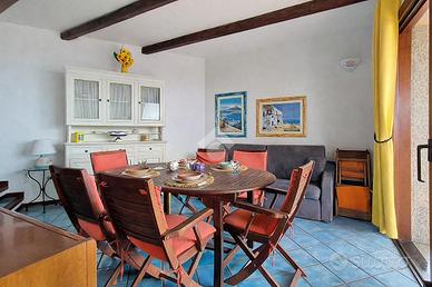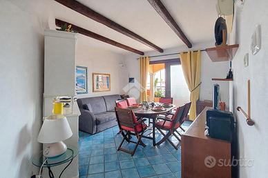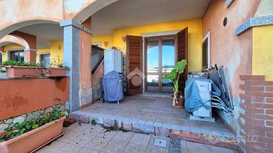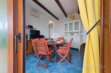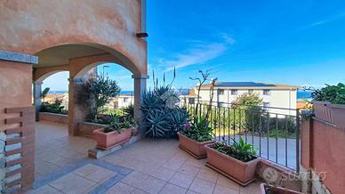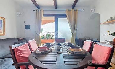 In posizione privilegiata, proponiamo in vendita un appartamento che regala una splendida vista mare. Il fabbricato, realizzato nel 2005, è tra i più richiesti della zona grazie alla posizione strategica e panoramica in quanto situato a soli 300 metri dalla via principale di Lu Bagnu, dai principali servizi e dalla suggestiva spiaggia della Madonnina. Si accede alla proprietà tramite un ampio cortile privato con elegante portico coperto vista mare, perfetto per pranzi all'aperto, momenti relax al tramonto e utilizzo anche nelle mezze stagioni, dotato di tutti comfort, come il barbecue in muratura, pratici ripostigli e lavastoviglie, utile per la gestione quotidiana e per le serate con ospiti. Gli interni si aprono su una zona giorno luminosa e ospitale, caratterizzata da travi a vista e da ambienti funzionali con cucina separata, comoda per chi ama cucinare mantenendo gli spazi ordinati e distinti. Tramite qualche scalino si accede alla zona notte, composta da una cameretta con letto a castello, ideale per bambini o come stanza ospiti, bagno curato e caratteristico, rifinito in cera sarda azzurra, completo di doccia ed infine una camera matrimoniale ampia e luminosa, con uscita diretta sul cortile e accesso ad un comodo ambiente ripostiglio/zona lavanderia/cabina armadio, luogo ideale per ottimizzare gli spazi e avere tutto in ordine. A completare la proprietà, posto auto privato. Una soluzione versatile, perfetta sia come abitazione principale che come casa per le vacanze: ambienti funzionali, comfort completi e spazi comodi pensati per la quotidianità. Lo spazio esterno, pratico e vivibile, aggiunge valore e qualità al vivere la casa.
