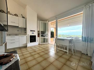 CASTIADAS - Località Sant'Elmo, a 200 metri dall'omonima spiaggia, rinomata per il suo mare turchese e la sua sabbia bianca, proponiamo in esclusiva graziosa villetta a schiera al piano rialzato con giardino e splendida vista mare. Posteggiata l'auto nell'apposito spazio riservato, tramite un cancelletto e in maniera indipendente, si accede al giardino di proprietà, che si presenta in ottimo stato manutentivo. Qualche gradino a salire e giungiamo al patio, che si estende su due lati e sulla quale è posizionata una vasca idromassaggio, dalla quale si può godere del panorama sul mare e sulla spiaggia di Sant'Elmo. Internamente, l'unità immobiliare è di tipologia trivano, costituita quindi da soggiorno con angolo cottura, una camera matrimoniale, una cameretta con due letti singoli e il bagno con doccia. La soluzione si presente in ottimo stato manutentivo e viene ceduta completa di arredi e termocondizionata. Consigliamo la soluzione sia come casa vacanza che come investimento, vista la rarità di soluzioni a questa distanza dal mare e viste le alte rendite ricavabili dalle locazioni estive.