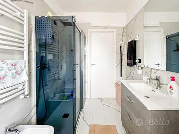 L'appartamento disponde inoltre sul retro dell'immobile di un secondo spazio esterno pavimentato, di cui piastrelle e guaina rifatte nel 2019, garantendo così una doppia esposizione dell'immobile.