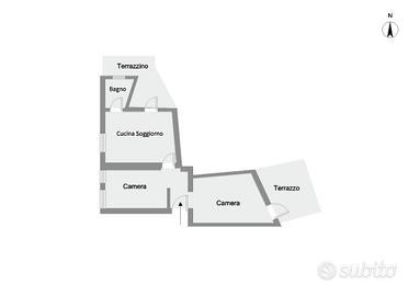 L'immobile, posto al piano rialzato, si compone di ingresso su disimpegno, due camere (di cui una con affaccio su un terrazzo di circa 12 mq, ideale per momenti di relax e convivialità), cucina-soggiorno con affaccio su un terrazzino coperto, perfetto da utilizzare come veranda esterna, e bagno finestrato.