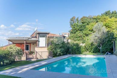 La proprietà si estende all'esterno, su una terrazza coperta con accesso diretto alla piscina, luogo perfetto per godersi cene e momenti di relax. Anche la sicurezza è garantita grazie alla porta blindata e da un avanzato sistema di allarme esteso in tutto l'immobile.