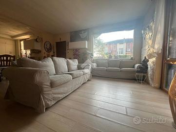 CAVERNAGO TRILOCALE CON AMPIO GIARDINO, BOX DOPPIO E TAVERNA In una zona molto tranquilla e riservata, proponiamo splendido trilocale al piano terra con ingresso indipendente e grande giardino su due lati della casa. L'abitazione si apre su un luminosissimo soggiorno, impreziosito da una grande finestra che regala una luce naturale straordinaria durante tutto il giorno. La porta finestra del salotto consente l'accesso diretto ad uno dei due lati del giardino, perfetto per pranzi e cene all'aperto o momenti di relax. La zona notte comprende una camera matrimoniale con accesso diretto ad uno spazio esterno privato, ideale per posizionare un tavolo da pranzo o sdraio per prendere il sole, una seconda camera e doppi servizi. Inoltre un ripostiglio non visibile nelle fotografie, utile per mantenere sempre in ordine gli ambienti. Completa la proprietà un box doppio con una comoda taverna e lavanderia collegati esternamente all'immobile. Un'abitazione ideale per chi cerca comodità, privacy e spazi esterni vivibili senza rinunciare al comfort.