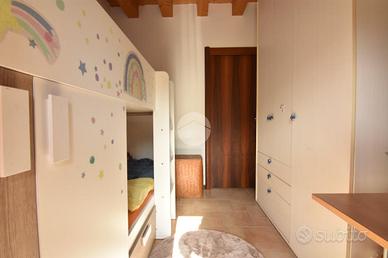 La zona notte è ben separata e accessibile tramite un comodo corridoio, dove troviamo una camera da letto matrimoniale con doppio affaccio su due terrazze, una camera singola con accesso al proprio balcone, un bagno finestrato con doccia e un pratico ripostiglio.