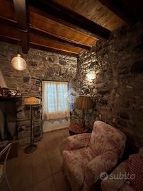 Trilocale di ca. 70mq a piano terra composto da: soggiorno con camino e particolari di sasso a vista, cucina abitabile, due camere, ripostiglio e bagno.