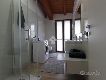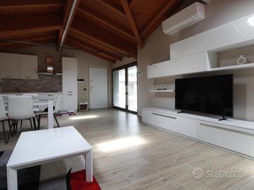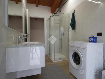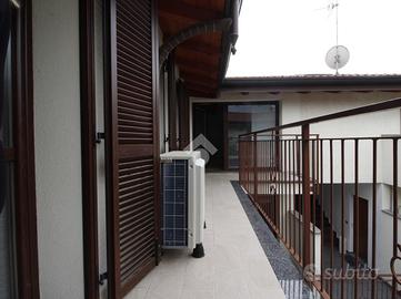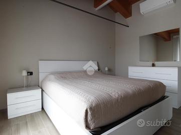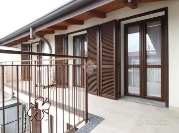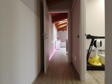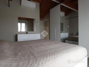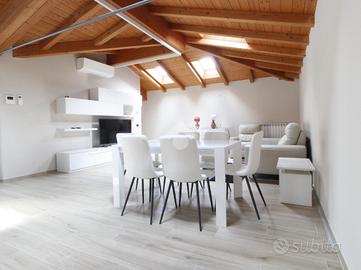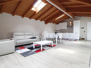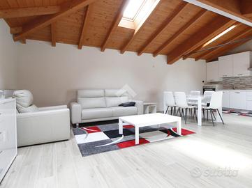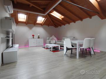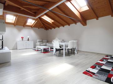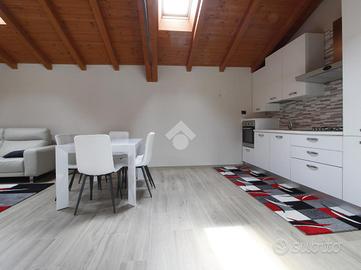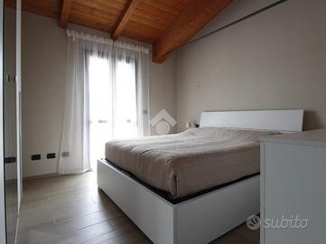 Cerro Maggiore. In una moderna corte, situata nella zona centrale e servita del paese presentiamo un ottimo appartamento di 3 locali. L'immobile si trova al 2° ed ultimo piano. Presenta finiture di pregio e particolari che rendono molto accogliente l'ambiente. Tutto il soffitto è caratterizzato dalle travi a vista in legno, con vari veluxes. La zona giorno è spaziosa e la cucina è a vista. Un'ampia vetrata permette di raggiungere il balcone, accessibile anche dagli altri locali dell'appartamento. Cameretta, bagno con doccia. Camera matrimoniale con bagno padronale, anch'esso con doccia. Impianto di climatizzazione, box e cantina.