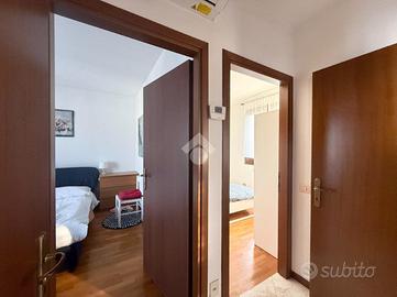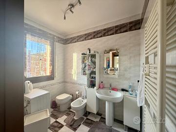 Al piano primo con tripla esposizione, zona giorno con cucina finestrata, disimpegno notte, due camere generose, bagno finestrato con vasca angolare e terrazzo perimetrale.