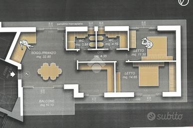 Prosegunedo dal disimpegno troviamo la zona notte caratterizzata da una camera matrimoniale e una camera doppia servite da due bagni.