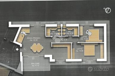 L'ingresso conduce ad una luminosa zona giorno servita da terrazzo.