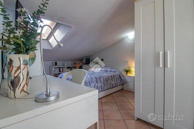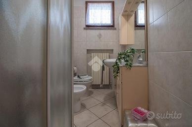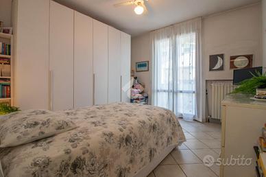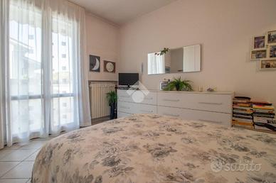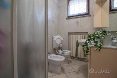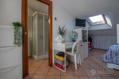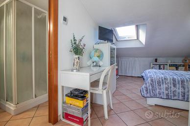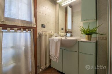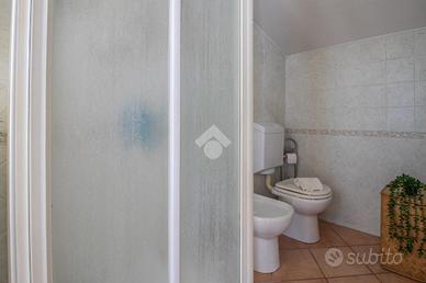 Proseguendo verso la zona notte troviamo il bagno principale con box doccia e la camera da letto matrimoniale con balcone privato.