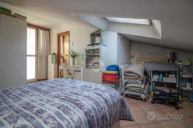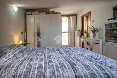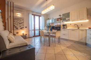 L'abitazione, posta al primo piano, si compone di luminoso soggiorno con angolo cottura dal quale è possibile accedere al balcone verandato con camino.