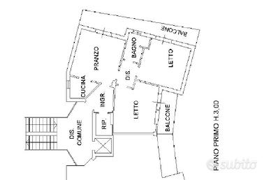 composto da soggiorno, cucinotto, due camere da letto triple e bagno finestrato con box doccia.