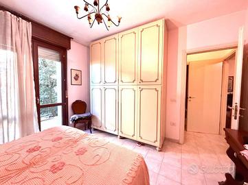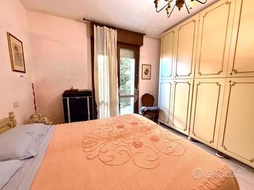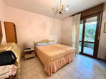Un disimpegno porta alla zona notte ,composta da una spaziona camera matrimoniale con accesso diretto alla giardino privato parzialmente pavimentato e perfetto per pranzi all' aperto o momenti di relax , da una seconda camera da letto e da un bagnno finestrato completo di box doccia.