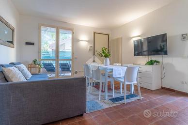 AFFITTO ESTIVO - CERVIA (Viale Volturno) Disponibililità: AGOSTO: €4.500,00 SETTEMBRE: €2.000,00 A soli 300 metri dal mare, proponiamo appartamento al piano terra con ingresso indipendente e giardino privato, ideale per pranzi e cene all'aperto. L'immobile è composto da soggiorno con angolo cottura e divano letto. La zona notte include due camere matrimoniali e un bagno dotato di box doccia. Dotazioni: Posto auto privato, aria condizionata, lavatrice, lavastoviglie. Adatto per nuclei familiari composti da un massimo di 6 persone. Deposito cauzione danni: €300,00. Pulizie finali: €150,00. Animali non ammessi. CIR: 039007-CV-00069 CIN: IT039007B42ATYGTJS Per ulteriori informazioni o per prenotare un appuntamento per la visita, si prega di contattare i numeri o