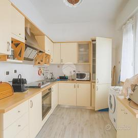 L'ingresso conduce a una spaziosa cucina abitabile, ben separata dal soggiorno/zona pranzo, anch'esso ampio e luminoso, ideale per momenti di relax o convivialità. Un disimpegno porta al bagno finestrato, dotato di box doccia.