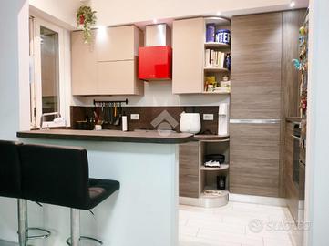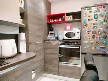 La soluzione è composta da ingresso sull'ampio e luminoso soggiorno con pratica cucina a vista.