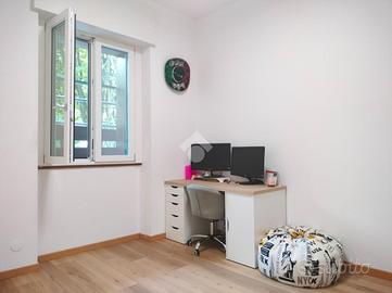 Dal disimpegno si accede alla zona notte costituita da camera matrimoniale, cameretta, bagno e comodo ripostiglio.