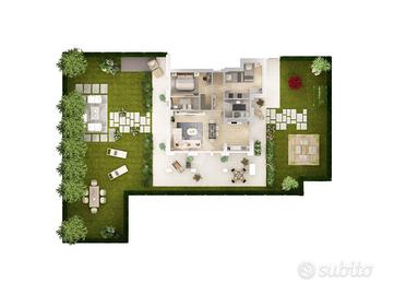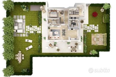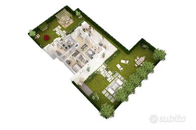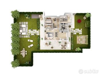 Trilocale doppi servizi di 136mq (105mq + 440mq giardino)