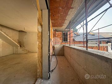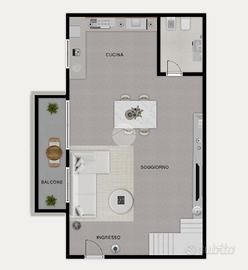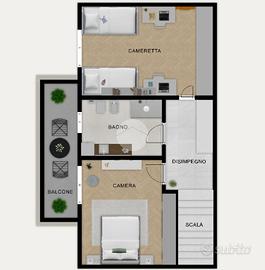 Accessibile da un'elegante scala rifinita in serizzo, l'immobile si sviluppa su due livelli abitativi al primo e secondo ed ultimo piano, ed è caratterizzato dalla doppia esposizione sud-ovest. Dall'ingresso accediamo al grazioso soggiorno con cucina a vista, dotato di un'ampia portafinestra che rende l'ambiente luminoso, con affaccio sul primo balcone. A completare questo piano un bagno a servizio della zona giorno. La scala interna ci conduce al secondo piano, dove troviamo un disimpegno che divide la zona notte, così composta: camera matrimoniale con sfogo esterno sul secondo balcone, cameretta e bagno finestrato con doccia.
