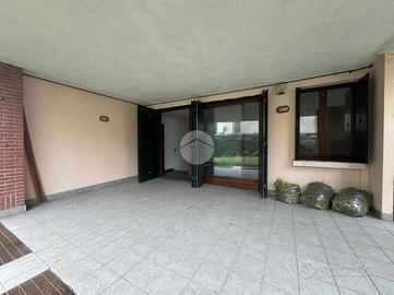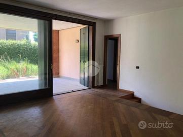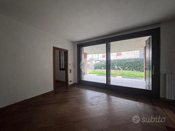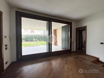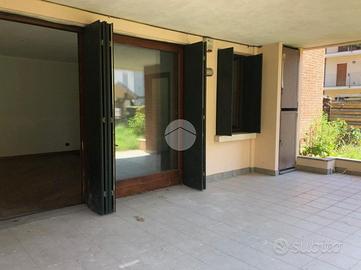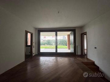 In zona centrale, comoda con i principali servizi, tra cui la stazione ferroviaria, raggiungibile in meno di cinque minuti a piedi, all'interno di una piccola palazzina di solo cinque famiglie, rifinita in mattoncino a vista, proponiamo in locazione trilocale posto al piano terra. L'ingresso si apre sul soggiorno, caratterizzato da un'ampia vetrata con uscita sul patio coperto e sul giardino privato. Completa la zona giorno la cucina, abitabile e separata. Il disimpegno divide la zona notte, composta da: camera matrimoniale con porta finestra e ringhiera alla francese, cameretta e bagno finestrato con vasca. Dal soggiorno, una scala conduce al piano interrato, dove troviamo: un ampio spazio open space con camino e possibilità di attrezzare una seconda cucina, un bagno finestrato con doccia e un ripostiglio. Questo locale multifunzionale si presta ad essere riadattato in base alle proprie esigenze. Incluso nell'offerta il box doppio, con accesso diretto dal piano interrato. L'immobile è dotato di aria condizionata. Riscaldamento autonomo. Spese condominiali a parte. Contratto di locazione 4+4. Richiesta fidejussione bancaria. Solo referenziati. Libero subito.