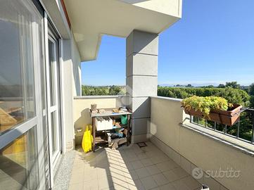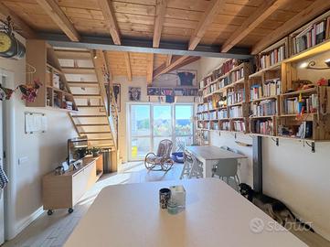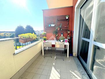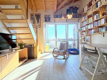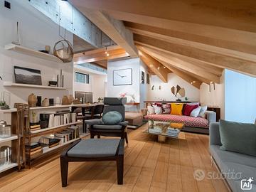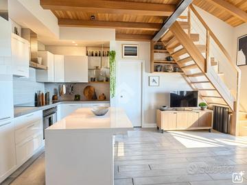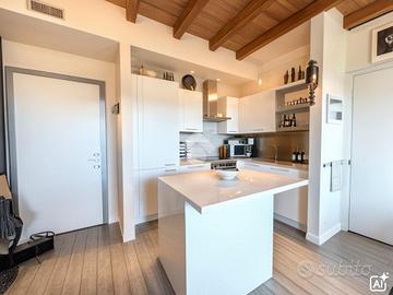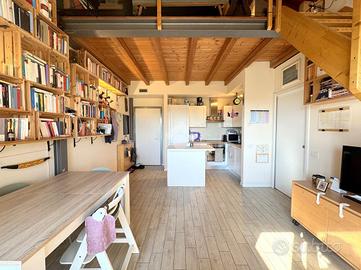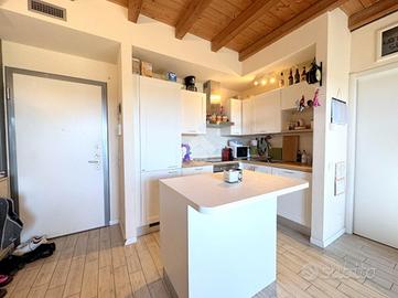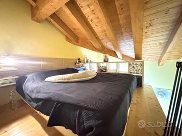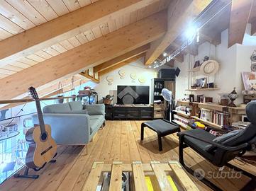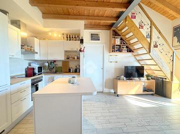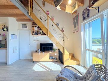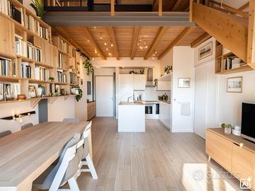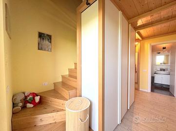 Proponiamo in vendita un appartamento di 3 locali, situato all'interno di un elegante complesso immobiliare di recente realizzazione, che si distingue per le rifiniture raffinate e l'attenzione ai dettagli. Situato in una zona residenziale tranquilla, circondata da ampi spazi verdi, offre una posizione comoda per accedere facilmente ai principali servizi ed agli imbocchi autostradali. Il complesso è stato realizzato secondo i più moderni standard tecnologici e rientra in classe energetica A2, assicurando un'abitazione ecosostenibile e altamente efficiente dal punto di vista energetico, con eccellente isolamento acustico e termico. L'appartamento è dotato di un impianto centralizzato di energia termica e frigorifera, che utilizza una pompa di calore aerotermica per garantire riscaldamento, produzione di acqua calda sanitaria e climatizzazione estiva. Il sistema di riscaldamento a pannelli radianti a pavimento assicura un comfort ideale in ogni stagione, mentre i deumidificatori completano il controllo dell'umidità, garantendo un ambiente perfetto durante l'estate. La zona giorno si apre su un luminoso soggiorno open space con angolo cottura caratterizzato da travi a vista e soppalco, ideale come spazio aggiuntivo utilizzabile come locale hobby in base alle proprie esigenze. Il disimpegno conduce alla zona notte, dove troviamo una camera matrimoniale soppalcata, dotata di un'ampia struttura armadio funzionale, con bagno privato e accesso al balcone. Completano la zona notte una seconda camera ed un secondo bagno. L'immobile presenta rifiniture moderne e personalizzate, infissi in PVC, tapparelle automatizzate, predisposizione antifurto, geotermico, pannelli fotovoltaici e domotica. Compreso di cantina, parte dell'arredo.