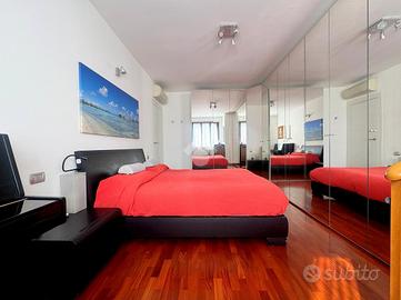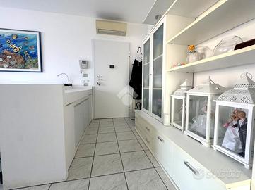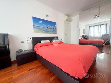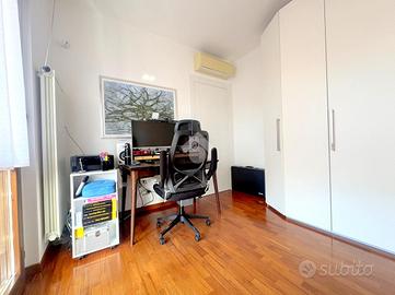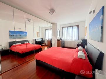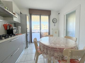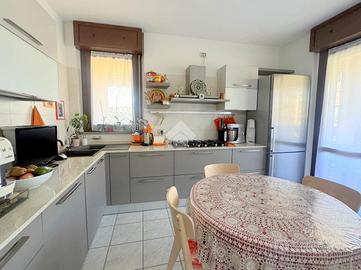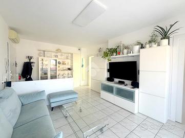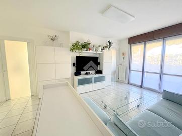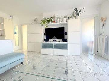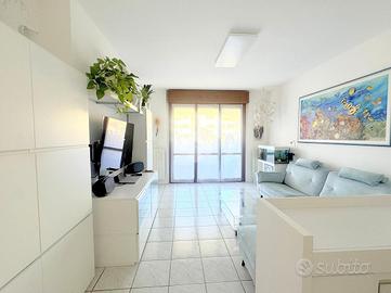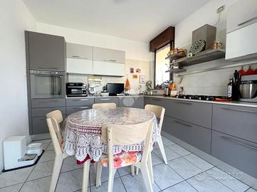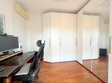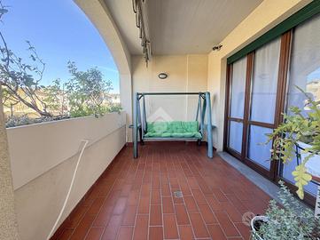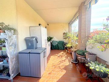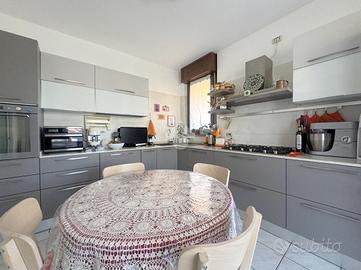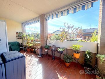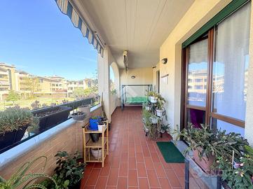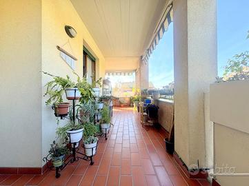 Proponiamo in vendita un appartamento di tre locali di 102 mq, inserito in un contesto tranquillo all'interno di una zona residenziale ottimamente servita e comoda per il raggiungimento di tutti i principali servizi, quali scuole, negozi, mezzi pubblici e aree verdi. L'immobile si distingue per gli spazi ampi e armoniosamente distribuiti, con una disposizione degli ambienti pensata per offrire il massimo comfort ed una piena funzionalità. L'ingresso si apre su una luminosa zona giorno, accogliente e ben valorizzata, affiancata da una cucina abitabile, ideale per la vita quotidiana e per momenti conviviali. Entrambi gli ambienti godono dell'accesso diretto al primo terrazzo, un vero valore aggiunto perfetto per pranzi all'aperto e piacevoli momenti di relax. La zona notte, ben separata e studiata per garantire privacy e tranquillità, si compone di una camera matrimoniale e di una cameretta, quest'ultima collegata al secondo terrazzo attrezzato con attacco per lavatrice e lavello, ideale anche come pratico spazio di servizio, il tutto si completa con due bagni, entrambi finestrati. La proprietà vanta una tripla esposizione ad est, sud e ovest, che garantisce luce naturale costante in ogni momento della giornata. Gli affacci aperti donano agli ambienti grande respiro e una piacevole sensazione di ampiezza, valorizzando ulteriormente la vivibilità degli spazi interni. Cantina, box doppio, arredo cucina e bagni nel prezzo. L'immobile si presenta in ottime condizioni, grazie ad un'attenta manutenzione dispone di infissi in legno con doppi vetri, impianto di aria condizionata, tende da sole ed un sistema di videosorveglianza.
