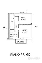 Al piano primo troviamo la zona notte, dove sono presenti una camera da letto singola e una matrimoniale servita da balcone.