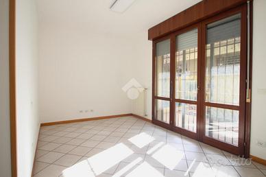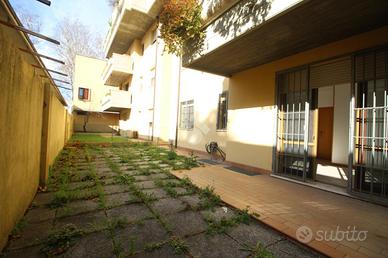 Cesena: nella zona del centro urbano vicino ai principali servizi proponiamo appartamento trilocale al piano terra. L'ingresso al piano terra si apre su un ampio soggiorno con accesso diretto alla prima corte privata. Collegato al soggiorno è presente un locale da cui si può ricavare una cucina separata. Tramite il disimpegno si accede alla zona notte composta da una camera matrimoniale e una camera doppia, dalla quale è possibile accedere alla seconda corte privata, Completano la zona notte i due bagni finestrati, uno con box doccia e l'altro con vasca da bagno. Fa parte della proprietà il garage doppio. L'immobile è dotato di inferiate e predisposizione per climatizzatore. Attualmente la soluzione è accatastata come locale commerciale ma c'è la possibilità di fare il cambio destinazione d'uso a civile abitazione, a cure e spese del proprietario. Per qualsiasi informazione o per fissare un appuntamento chiama lo