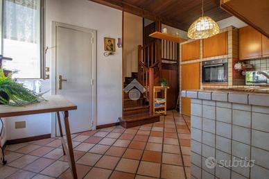 Entrando nella soluzione ci accoglie un luminoso soggiorno con cucina abitabile e il primo bagno finestrato. Proseguendo tramite una scala interna raggiungiamo il primo piano composto da tre ampie camere da letto e uno studio, conclude il piano il secondo bagno con box doccia finestrato.