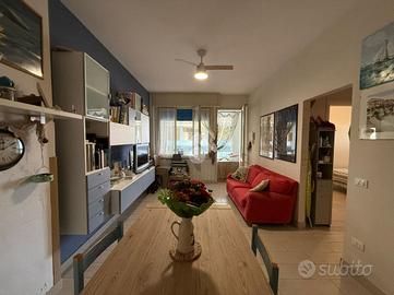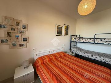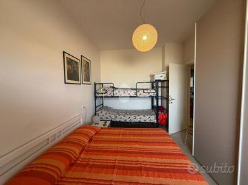 La zona giorno si apre su un ampio soggiorno con cucina a vista, un ambiente luminoso e accogliente. Le due camere matrimoniali offrono spazi generosi e sono arredate in modo confortevole, perfette per ospitare amici o familiari. Il bagno è dotato di box doccia e di tutti i comfort essenziali.