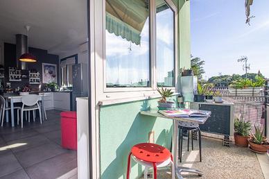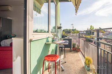 L'ingresso si apre su un luminoso soggiorno con cucina a vista, un ambiente open space accogliente e funzionale, pensato per vivere la casa in totale libertà. La zona giorno si affaccia su un balcone abitabile, perfetto per godersi momenti di relax all'aperto.