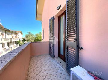 La zona giorno, composta dal soggiorno angolo cottura, si apre su un ampio balcone, ideale per momenti di relax all'aperto. Nella zona notte sono presenti due camere da letto matrimoniali, una con balcone e una camera con affaccio sullo stesso balcone della zona giorno. Bagno finestrato e dotato di piatto doccia.