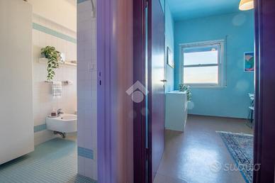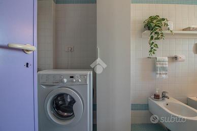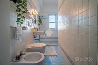 Il bagno, elegante e ben rifinito, è dotato di materiali selezionati e soluzioni funzionali che coniugano estetica e comfort.