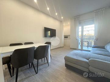 La disposizione interna comprende tre locali ben distribuiti, ideali per chi cerca una soluzione abitativa pratica e accogliente. L'ingresso è sulla zona giorno, composta dal soggiorno con cucinotto, un piccolo ripostiglio e il balcone. Nella zona notte sono presenti due comode camere da letto di cui una con accesso a secondo balcone e un bagno dal design moderno, finestrato e dotato di box doccia.