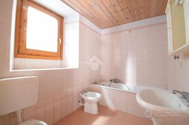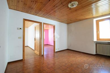 L'ingresso avviene direttamente dal vicolo che dalla farmacia conduce al ponte romano. Un piccolo atrio funge da disimpegno tra il bagno finestrato, il ripostiglio che accoglie la caldaia a metano e la zona giorno con angolo cottura.
