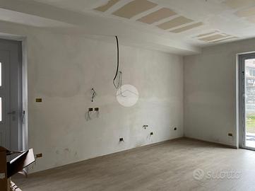 In una bifamiliare al piano terra, proponiamo in affitto un trilocale dotato di giardino privato. L'immobile è stato oggetto di ristrutturazione e sarà pronto per fine aprile. Sono presenti condizionatori e verrà inserita una cucina attrezzata, se richiesta. L'immobile è composto da ingresso su soggiorno con angolo cottura, da cui si ha accesso sul giardino, due camere da letto e bagno. L'ingresso è esclusivo. Il riscaldamento è autonomo a pavimento e le spese condominiali si aggirano sui 300€ annui.