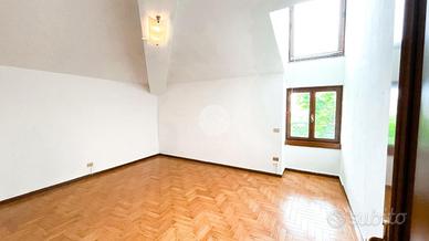 Le due camere da letto matrimoniali sono caratterizzate dalla presenza di ampie finestre e abbaini che permettono alla luce naturale di filtrare all'interno delle camere. Il pavimento in gres porcellanato effetto legno conferisce un tocco di eleganza e calore alle camere. Il bagno, dotato di servizi classici, dispone anche di lavatrice, doccia e vasca per garantire comfort e funzionalità.