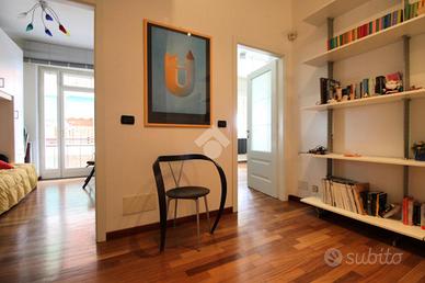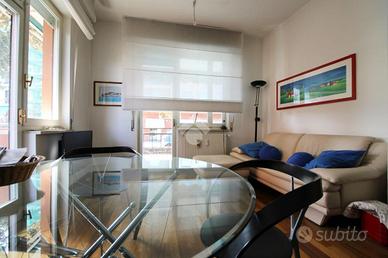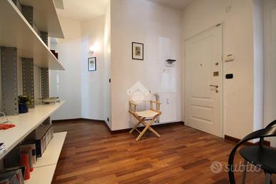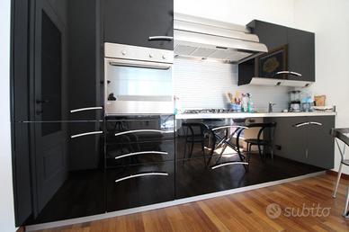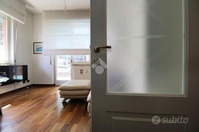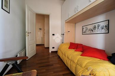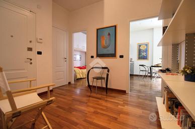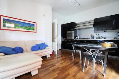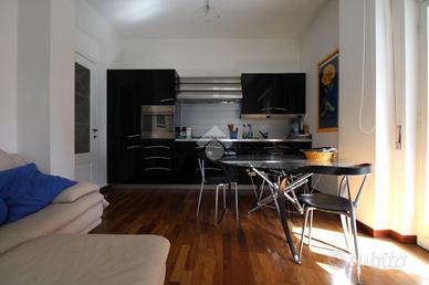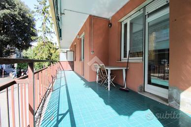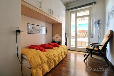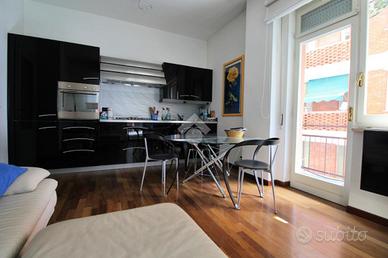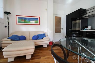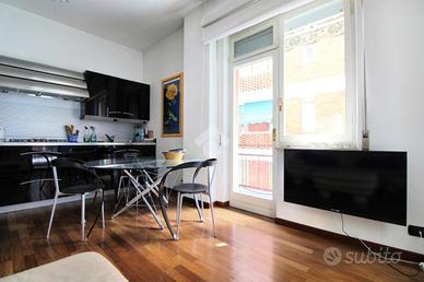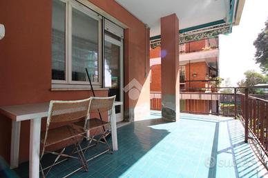 CHIAVARI - Viale Devoto - Proponiamo in vendita appartamento al quarto piano di sei con ascensore composto da ingresso, soggiorno con cucina a vista, camera da letto matrimoniale, camera singola, ripostiglio e bagno finestrato con doccia. Completa la proprietà una solana e una balconata perimetrale con accesso da tutti i locali che davanti alla zona giorno diventa vivibile. L'appartamento si presenta in ottimo stato conservativo con parquet in tutta casa, infissi in doppio vetro e tende elettriche parasole e viene venduto completamente arredato. Grazie all'esposizione Sud - Ovest gode di una bellissima luce naturale. Riscaldamento centralizzato con termovalvole.